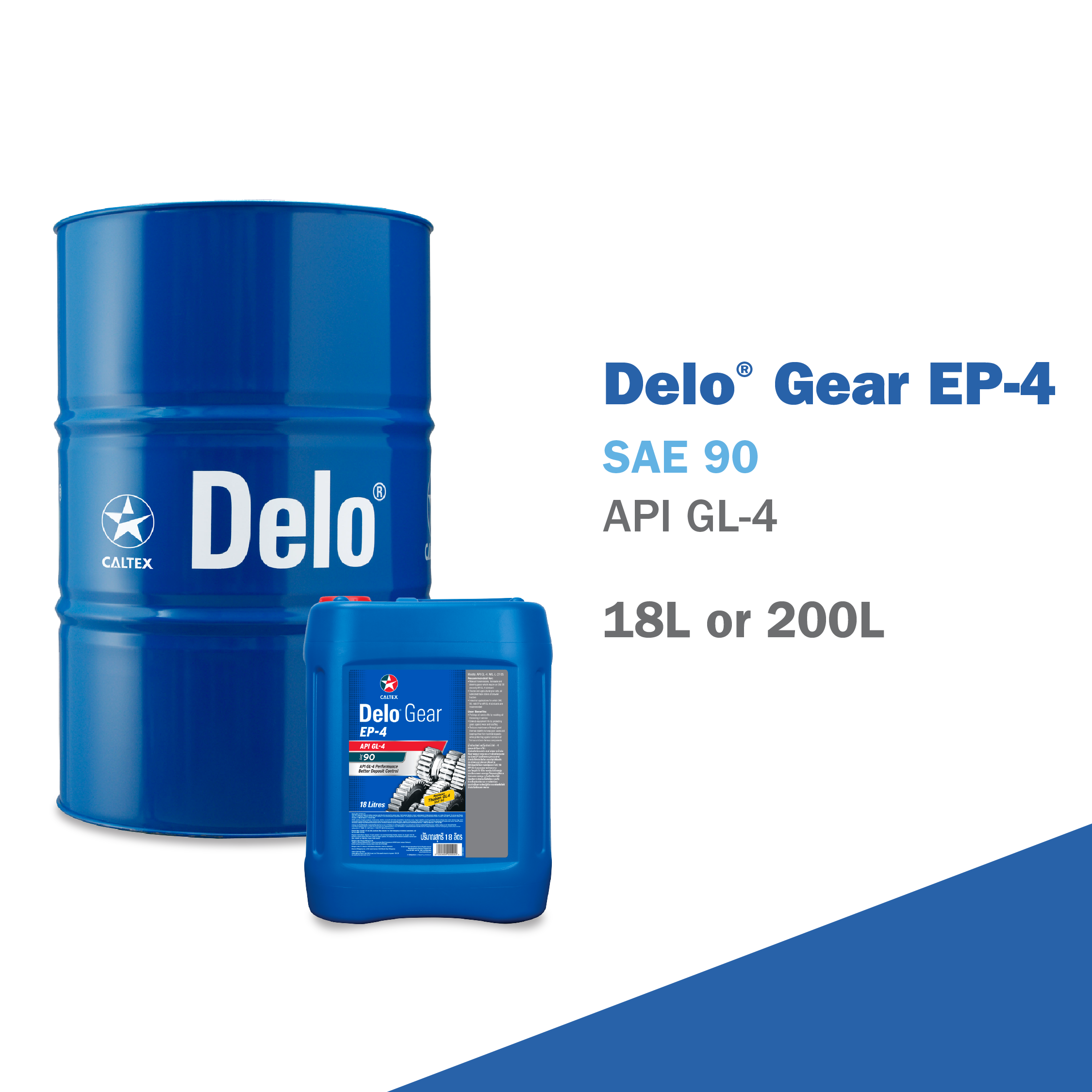 Delo Gear EP-4 are recommended for use in spiral bevel and hypoid differentials, power dividers, and oillubricated steering axle wheel bearings.