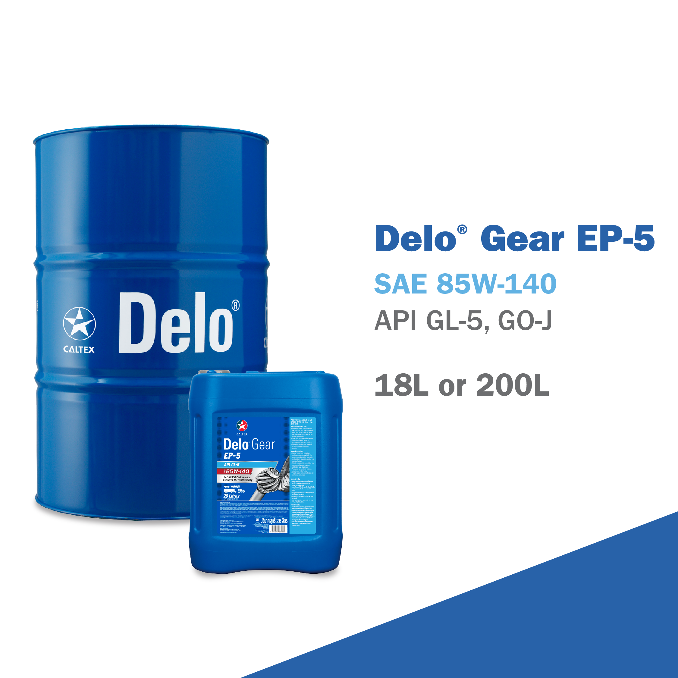 Delo Gear EP-5 are recommended for use in spiral bevel and hypoid differentials, power dividers, and oillubricated steering axle wheel bearings. Their multi viscosity characteristics allow their use in equipment operating over a broad ambient temperature range. This means good cold flow properties and gear protection.